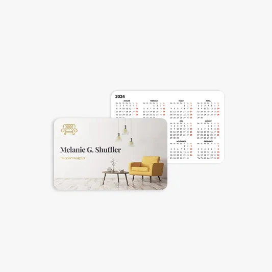 Die Online-Druckerei Chroma bietet Blattkalender in einem Universalformat von 85 x 55 mm, ähnlich wie eine Kreditkarte. Sie passen überall, wo man auch EC-Karten oder Visitenkarten trägt: Brieftasche, Dokumententenmappe, Hosentasche usw..